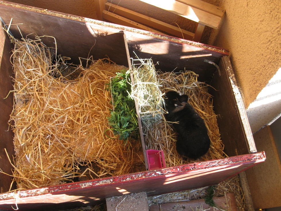 Die meisten handelsüblichen "Kaninchenställe" sind so, wie sie angeboten werden, als Schutzhüten für den Winter völlig ungeeignet: Da sie nach vorne hin meist (fast) komplett mit Draht versehen sind und das Holz in aller Regel extrem dünn ist, bleibt es im Innern kaum wärmer als draußen.
