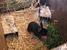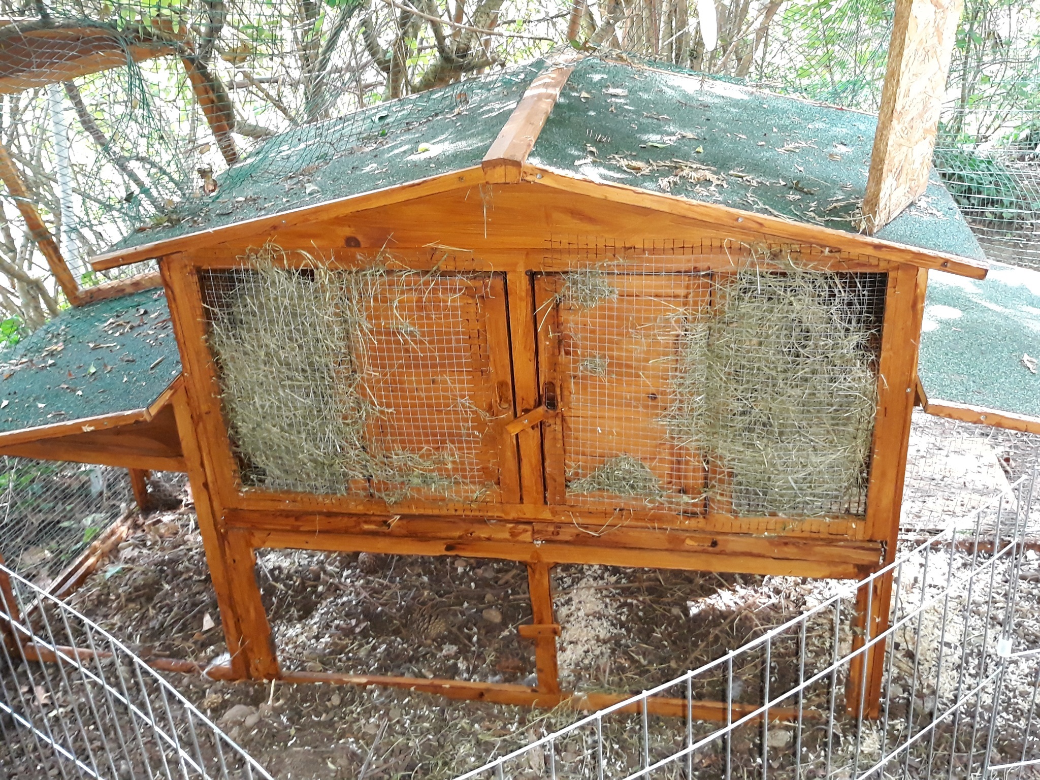 Die Schutzhütte stellt einen wettergeschützten, isolierten Rückzugsort für die Kaninchen dar, den sie Tag und Nacht bei Bedarf aussuchen und wieder verlassen können.