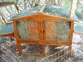 - Ein leicht angeschrägtes Dach ermöglicht es den Kaninchen zum einen, problemlos darauf zu sitzen, zum anderen sorgt es für eine Ableitung des Regenwassers.