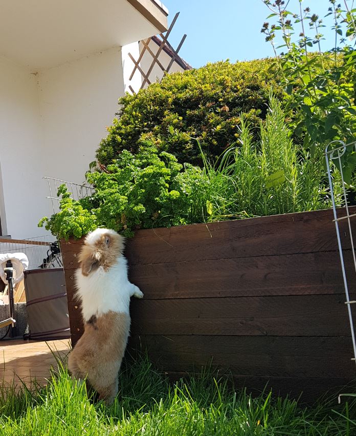 - Durch den hohen Rohfaser- und Flüssigkeitsanteil von Blattgemüse und Küchenkräutern muss ein Kaninchen große Mengen konsumieren, um seinen Energiebedarf zu decken. Dadurch verbringt es einen Großteil seines Tages mit Fressen, was dem Zahnabrieb nützt, die Verdauung ankurbelt und nicht zuletzt einen Zeitvertreib darstellt.