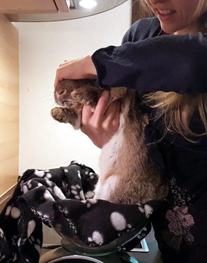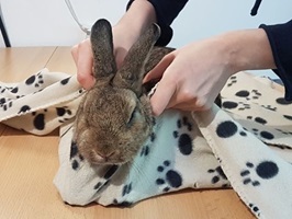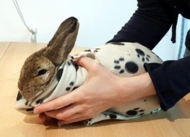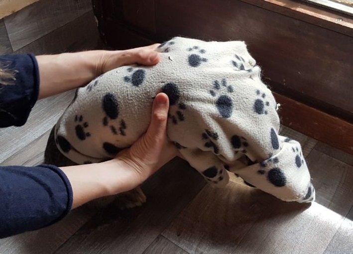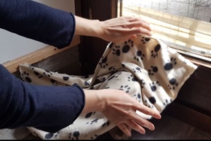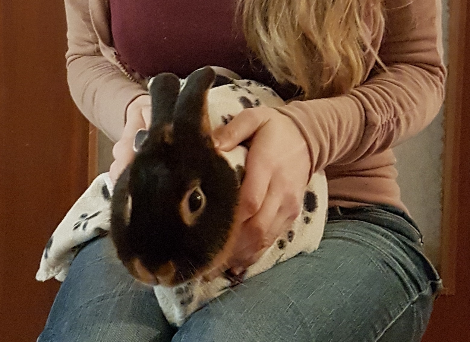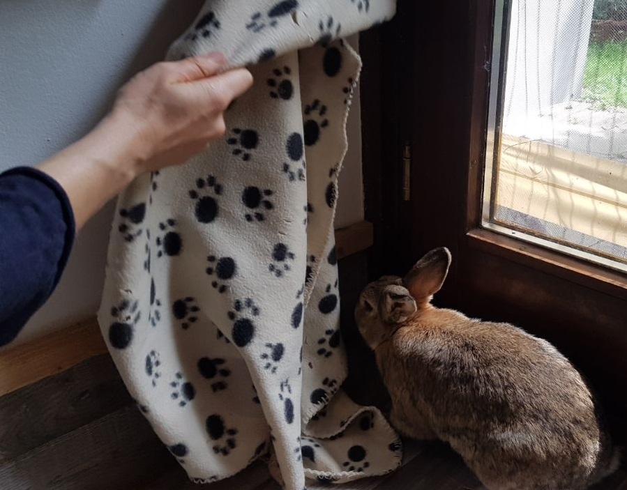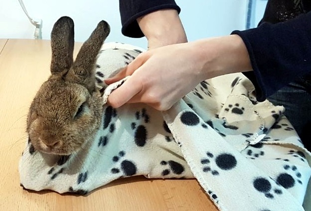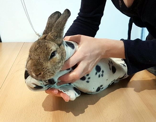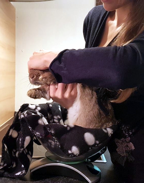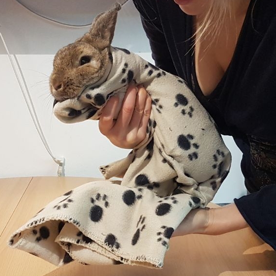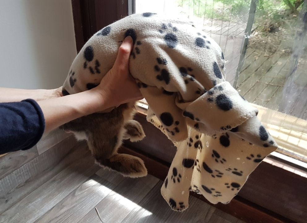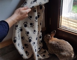 - Sie können das Kaninchen hervorragend in die Decke gewickelt fixieren, ohne es direkt mit den Fingern greifen zu müssen und es dadurch zusätzlich zu ängstigen.