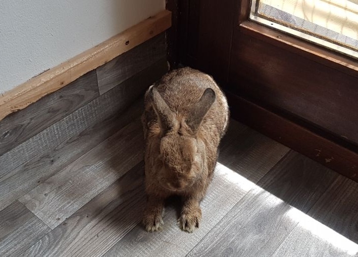 Haben Sie ein Kaninchen vor sich auf dem Schoß oder Tisch sitzen und benötigen spontan eine Hand, um beispielsweise einen Gegenstand zu greifen, können Sie die andere Hand kurz über die Augen und um die Ohren des Kaninchens legen. Durch die Dunkelheit und die Fixierung nach vorne verhindern Sie, dass es unerwartet flüchtet.