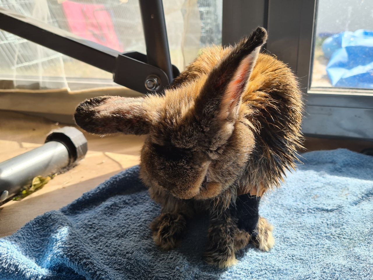 - 4. Lassen Sie das Kaninchen in einem beheizten, zugfreien und mit Handtüchern ausgelegten Bereich, bis es vollständig getrocknet ist. (Boden-)Kälte oder Wind könnten ansonsten zu einer gefährlichen Unterkühlung führen. An sehr heißen Tagen dürfen Kaninchen auch im Freien trocknen. Luftige Schattenplätze sind natürlich dennoch Pflicht!