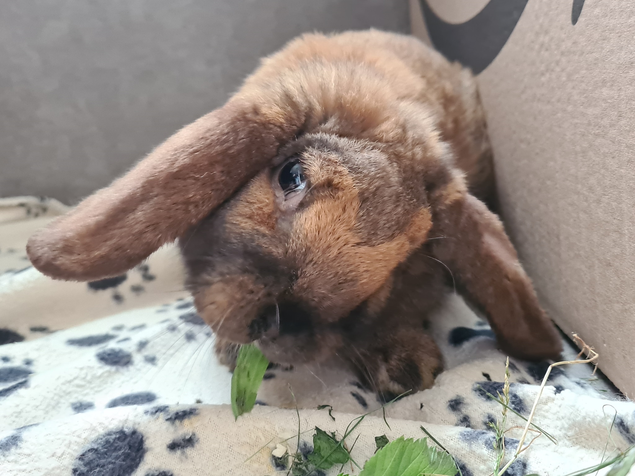 Kaninchen ohne Schneidezähne können nicht mehr abbeißen und benötigen mitunter geraspeltes oder kleingeschnittenes Futter. Bei "kleinen" Wiesen- und Küchenkräutern ist dies meist nicht notwendig; große, breite Blätter können dagegen problematisch sein. Dasselbe gilt für Zweige.