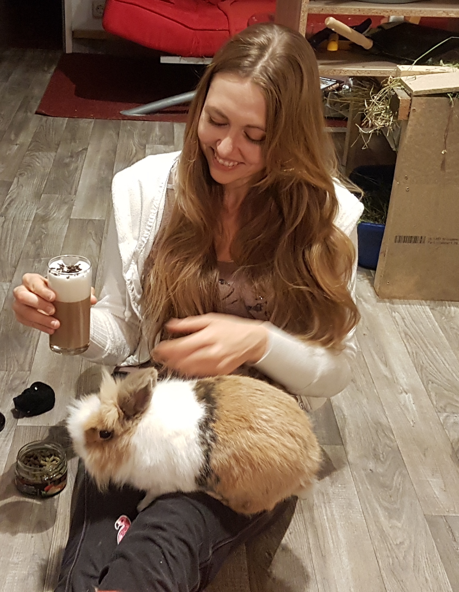 Zu den liebsten Beschäftigung zutraulicher Kaninchen gehört die Interaktion mit "ihrem" Menschen: Er wird fröhlich begrüßt, beschnuppert, umkreist, gelegentlich auf Schritt und Tritt verfolgt und wenn es sich anbietet, wird auch gerne einmal auf ihm herumgeklettert oder es sich auf seinem Schoß bequem gemacht.