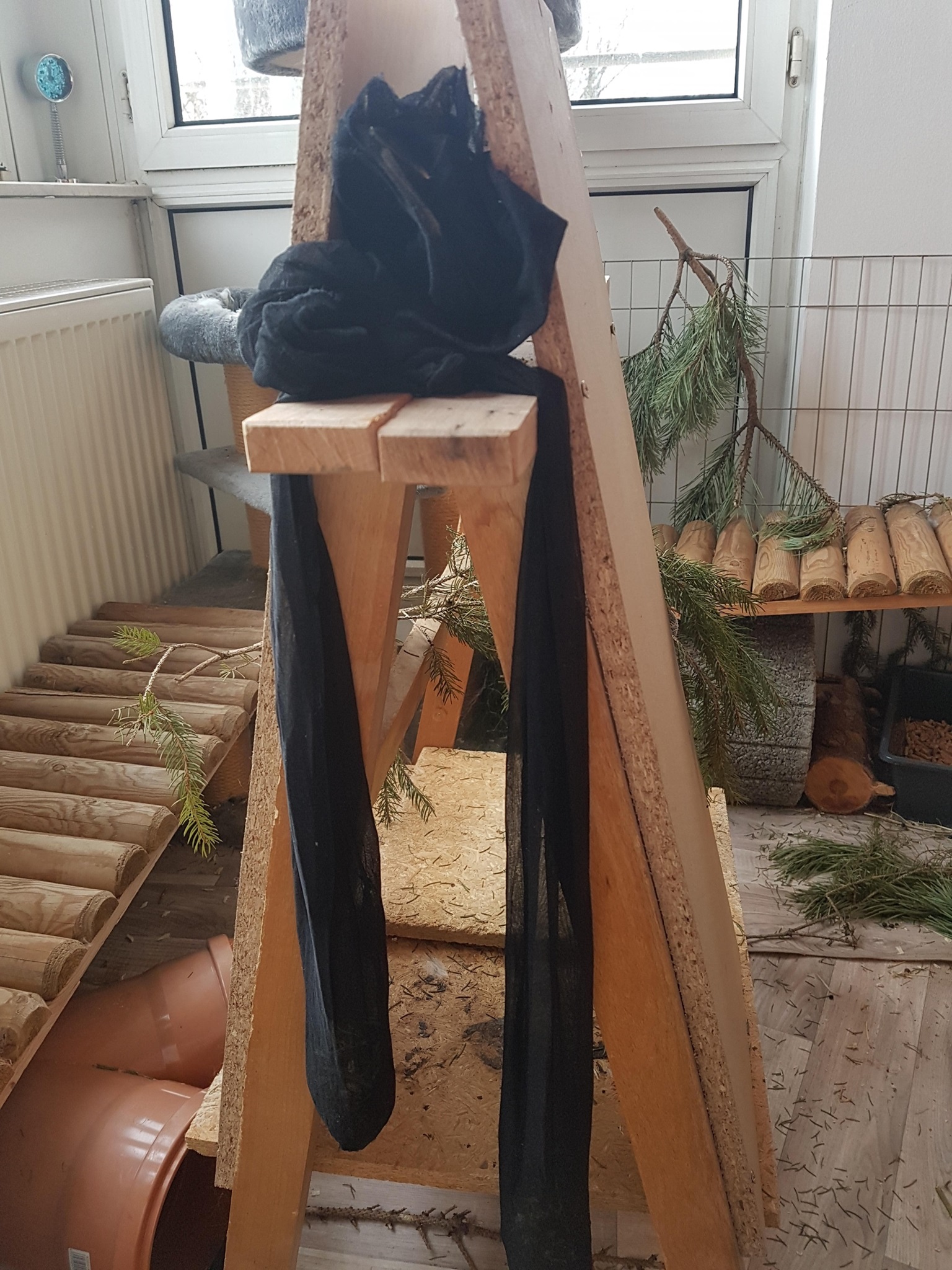 Handelsübliche lange Stoff- oder Netzröhren, die Kaninchen gerne zum Durchlaufen nutzen.