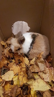 Ähnlich viel Spaß wie die Schneekiste im Winter bereitet die Laubkiste im Herbst. Darüber hinaus hält sich das Laub deutlich länger und garantiert tagelangen Spaß. Ein einfacher Pappkarton genügt: Füllen Sie ihn mit trockenem Laub und streuen Sie eine kleine Menge Leckerbissen hinein. Kaninchen lieben es, in den raschelnden Blättern zu wühlen, nach Futter zu suchen und an den Blättern selbst zu knabbern.
