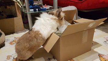 Tüten – besonders, wenn sie etwas Leckeres zu fressen enthalten – werden von einigen Kaninchen gerne als spannend raschelnde Höhlen genutzt. Verwenden Sie jedoch niemals Plastiktüten – die Kaninchen könnten sie versehentlich mit anfressen oder darin ersticken.