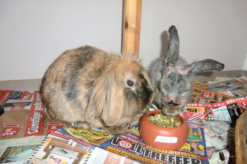 Versuchen Sie jedoch in jedem Fall, mindestens einen Artgenossen mit dem kranken Kaninchen zusammen zu lassen! Dies ist in der Regel nicht schwierig, da zwischen einem Duo selten Spannungen entstehen.