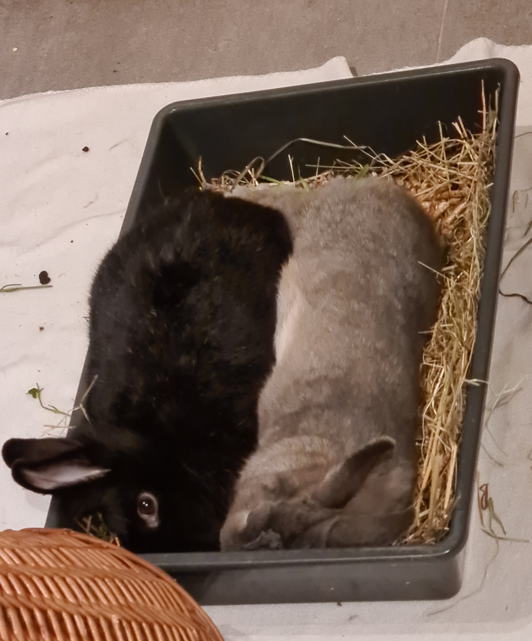 Eine tiergerechte Unterbringung (je nach Kaninchengröße mind. 6-10 qm pro Pärchen rund um die Uhr; umfangreiche Strukturierung des Kaninchenzuhauses, diverse Beschäftigungsmöglichkeiten; keine ständigen Lärmfaktoren), ggf. mehrere Futterplätze sowie die Kastration häufig scheinträchtiger oder enorm unausgeglichener, launischer Häsinnen sind daher Grundvoraussetzungen für Harmonie in der Kaninchengruppe.