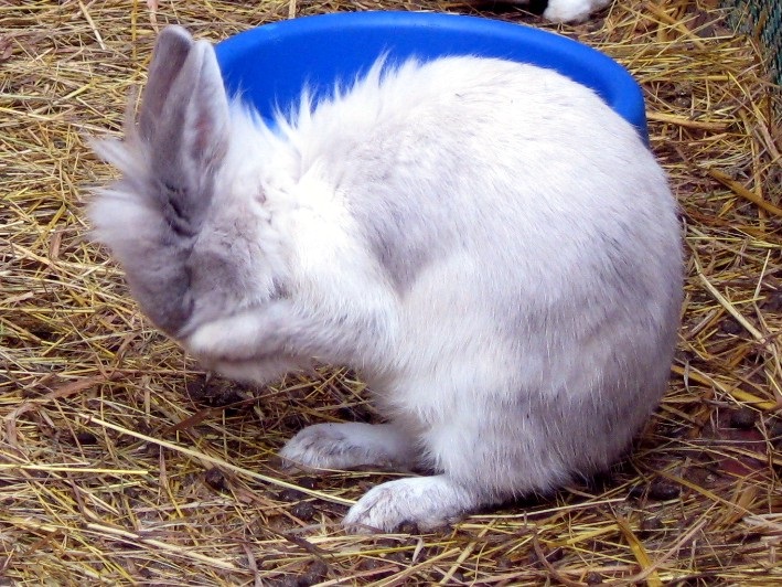 Auch innerhalb einer Kaninchengruppe kann es zur Angstaggression kommen - fast immer infolge von Haltungsfehlern. Dazu gehört das Einsperren der Tiere auf engen Raum (Käfige, Ställe etc.): Möchte das überlegene Kaninchen die Rangordnung klären, kann das unterlegene nicht flüchten und sieht seine einzige Chance in einem Gegenangriff. Dieser wiederum wird vom dominanten Tier als "Herausforderung" betrachtet, da ein unterwürfiges Tier normalerweise fortlaufen würde.