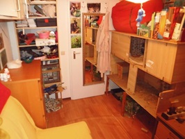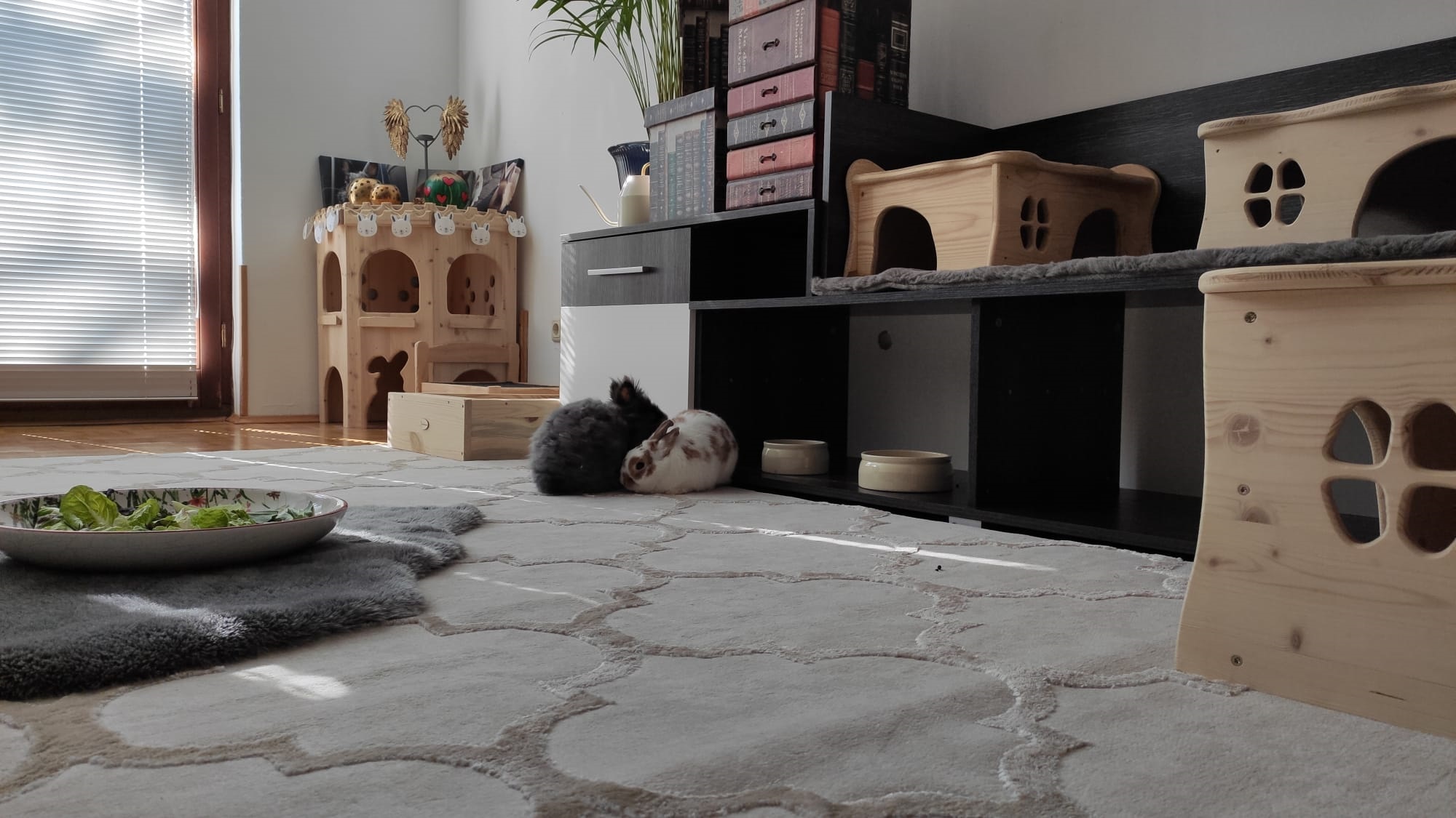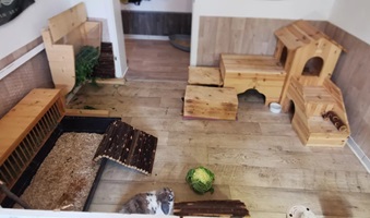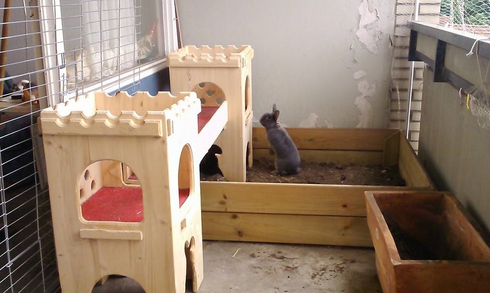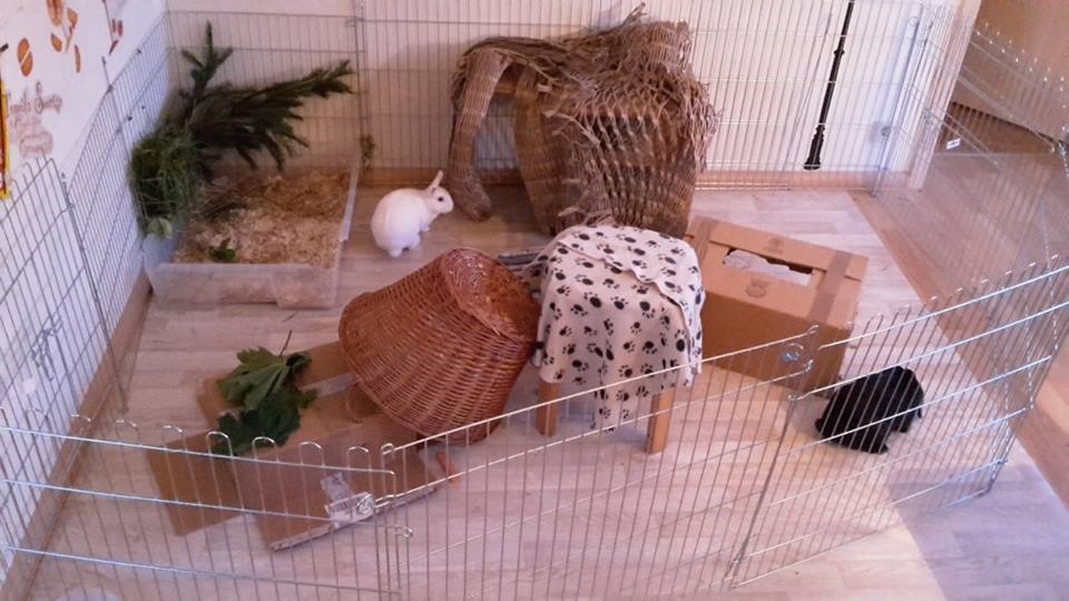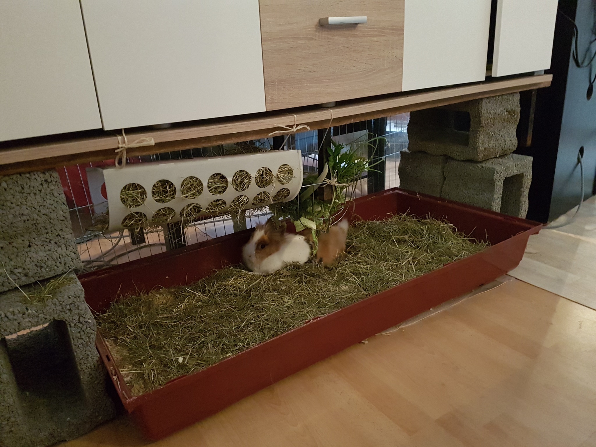 Ein ganzer Raum, der allein den Kaninchen zur Verfügung gestellt wird, setzt ausreichende Platzverhältnisse voraus, bietet den Tieren aber mit ausreichend Strukturierung einen herrlichen Abenteuerspielplatz.